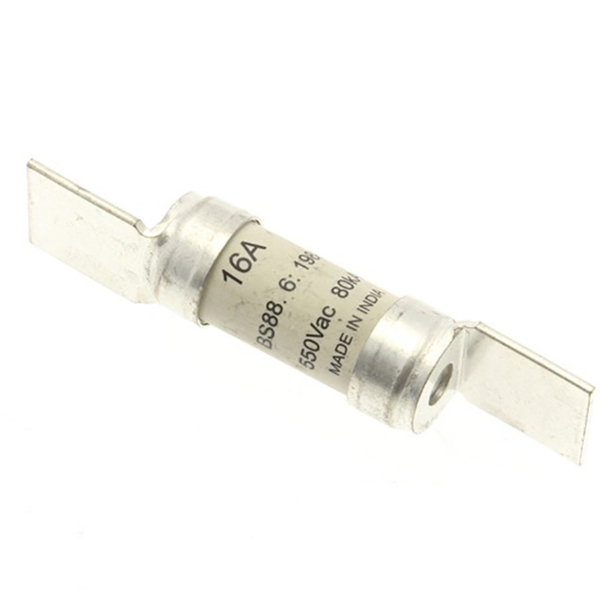 This is 16A Bolted Tag Fuse F2 550V ac manufactured by Eaton. The manufacturer part number is ESD16. It has a blade type tag . Concerning body diameter, it is 13.8mm. The product has a gg application category. The product has a current rating of 16a. The fuse dimensions of the product is 13.8 x 35.5mm . Moreover, the product has a nominal 550v ac voltage rating. A fuse with a f2 size. Its tag is 15mm wide . Moreover, its tag orientation is offset . Its body length is 35.5mm. Moreover, it has a high rupture capacity yes . The fuse complies with bs88, iec 60269 standards. It has an overall length of 68mm.