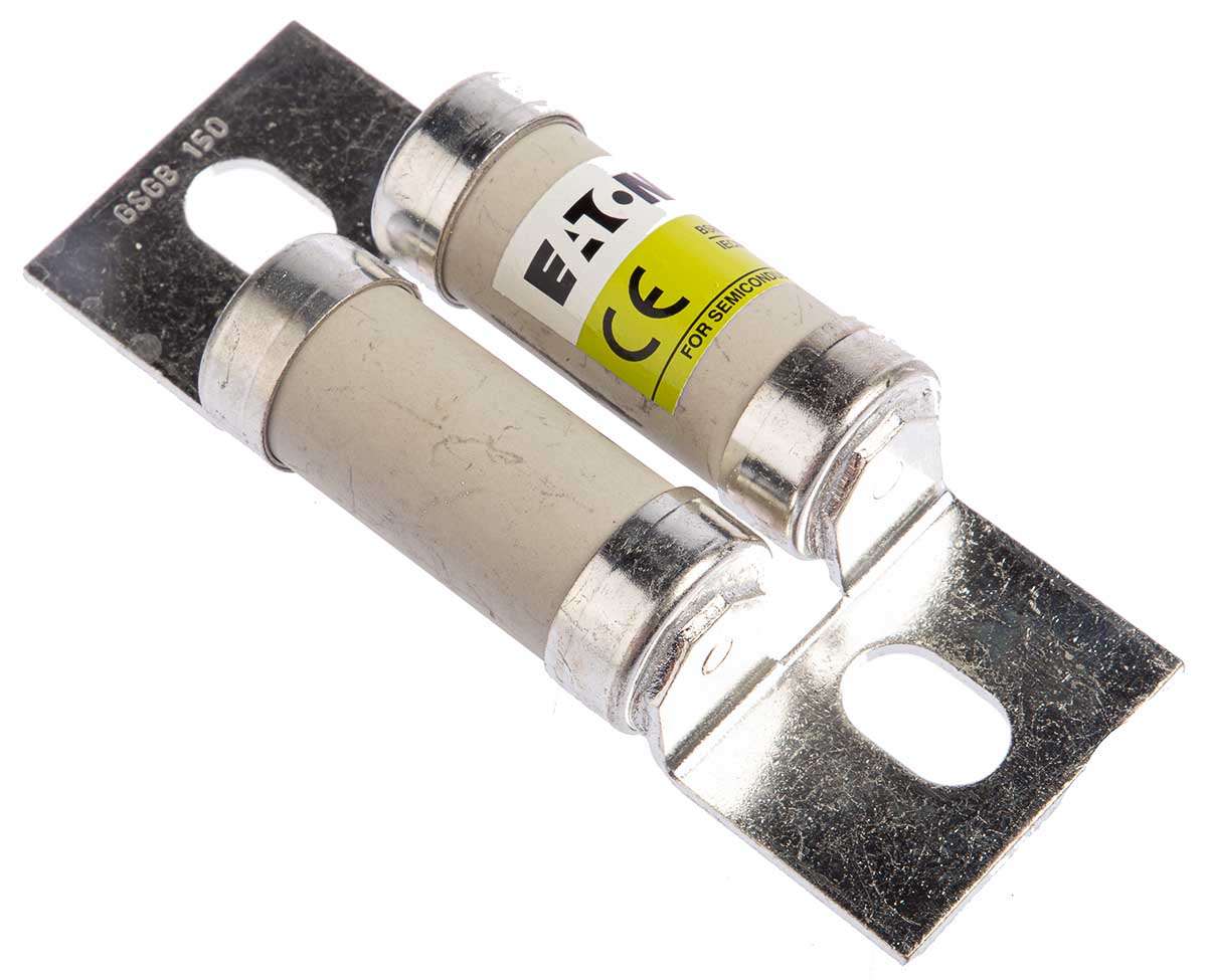 This is 150A British Standard Fuse 660 V ac 400V dc 72mm manufactured by Eaton. The manufacturer part number is GSGB150. It has a bolted type tag . Concerning body diameter, it is 35.7mm. The product has a ar application category. The product has a current rating of 150a. Moreover, the product has a nominal 660 v ac, 400v dc voltage rating. The product bussmann, is a highly preferred choice for users. It has an overall length of 95mm. It has a typical 72mm fixing centres . Its tag is 31.8mm wide . Moreover, its tag orientation is offset . The fuse has a robust ff speed. Its body height is 48mm. The fuse complies with bs 88 standards. Moreover, it has a high rupture capacity yes .