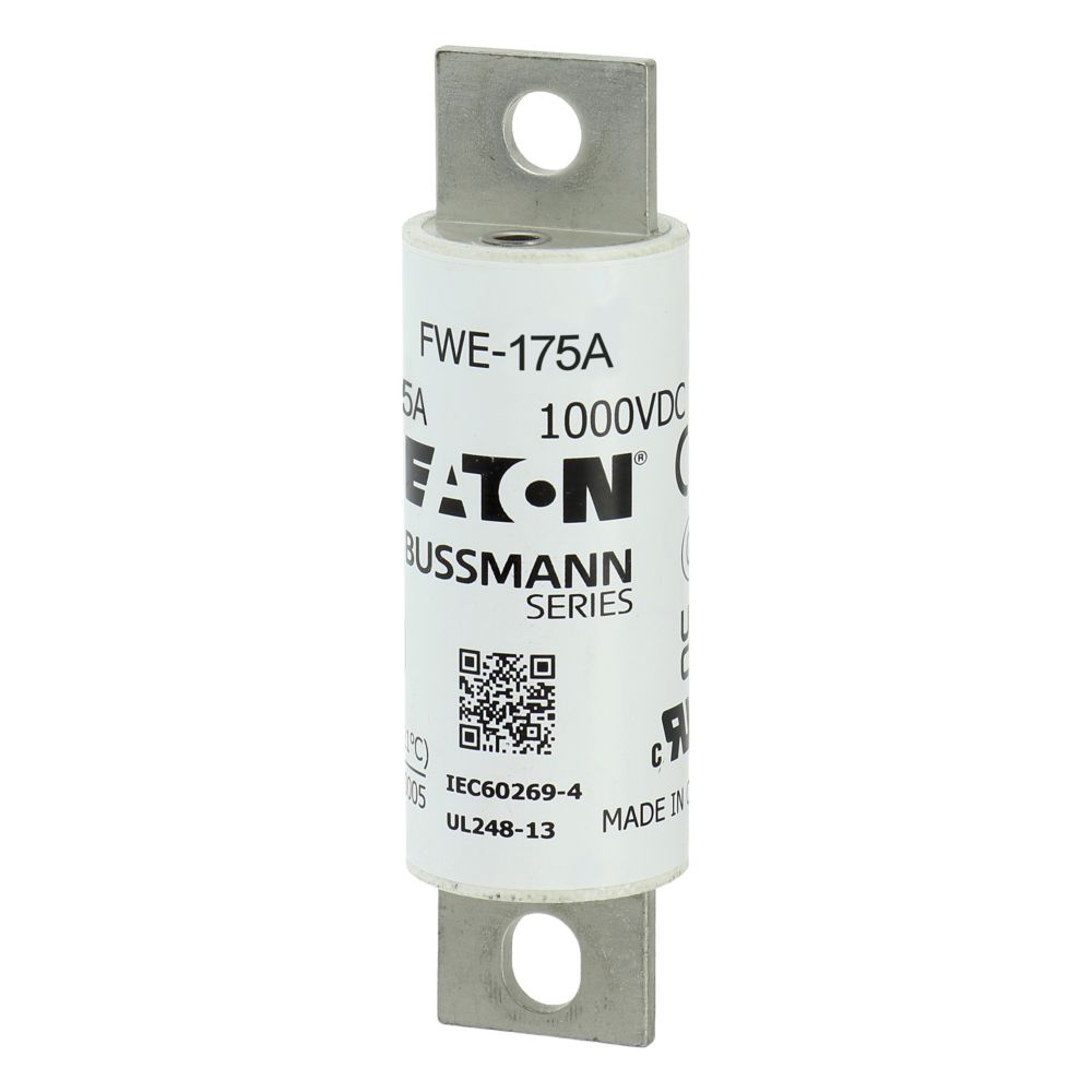 This is 175A Tag Fuse 30mm 1kV manufactured by Eaton. The manufacturer part number is FWE-175A. It has a bolted type tag . The product has a current rating of 175a. Moreover, the product has a nominal 1kv voltage rating. The product fwe, is a highly preferred choice for users. A fuse with a 30mm size. The fuse complies with ce, iec 60269-4 standards.