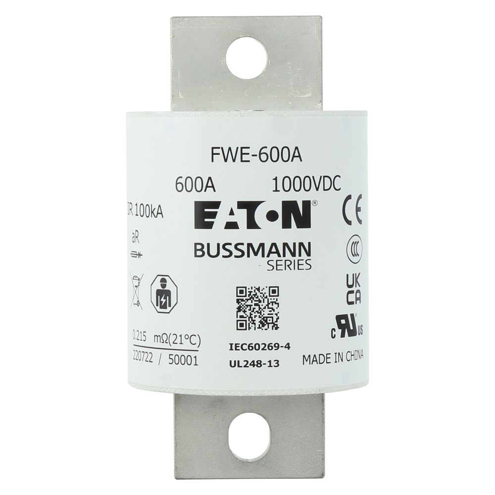 This is 600A Tag Fuse 60mm 1kV manufactured by Eaton. The manufacturer part number is FWE-600A. It has a bolted type tag . The product has a current rating of 600a. Moreover, the product has a nominal 1kv voltage rating. The product fwe, is a highly preferred choice for users. A fuse with a 60mm size. The fuse complies with ce, iec 60269-4 standards.