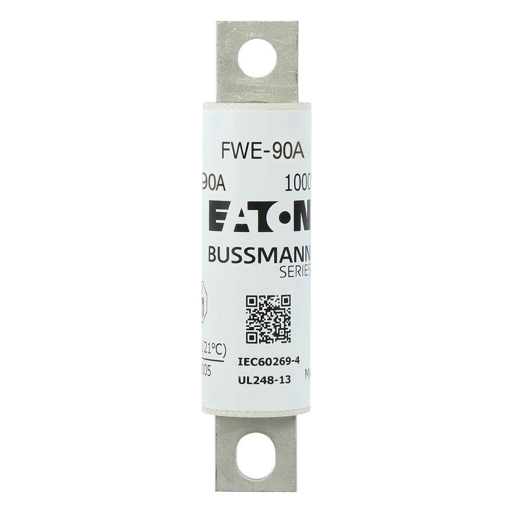 This is 90A Tag Fuse 25mm 1kV manufactured by Eaton. The manufacturer part number is FWE-90A. It has a bolted type tag . The product has a current rating of 90a. Moreover, the product has a nominal 1kv voltage rating. The product fwe, is a highly preferred choice for users. A fuse with a 25mm size. The fuse complies with ce, iec 60269-4 standards.
