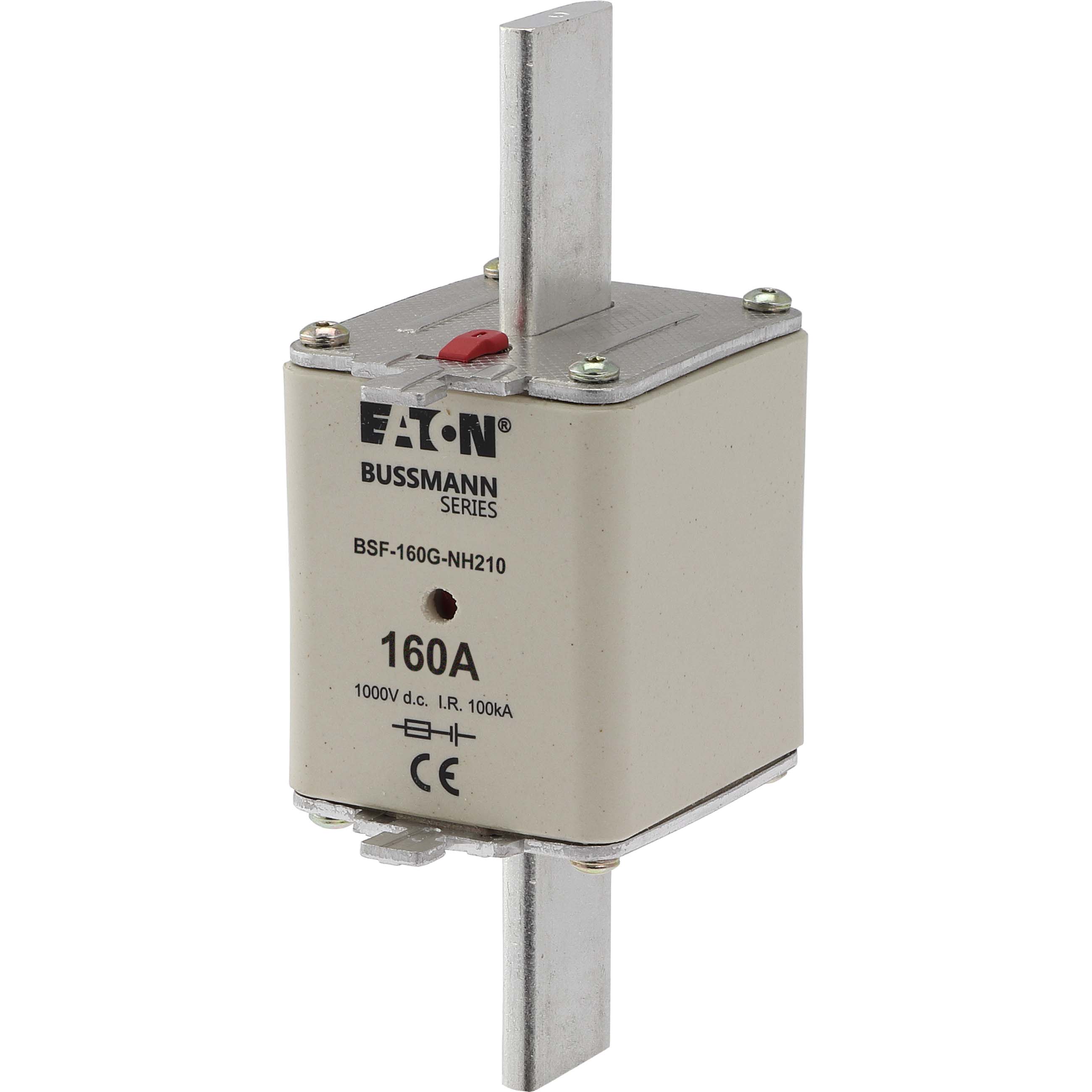 This is FUSE 160A 1000V DC BSF SIZE 2 DUAL IND manufactured by Eaton. The manufacturer part number is BSF-160G-NH210. The product has a current rating of 160a. Moreover, the product has a nominal 1kv voltage rating. It has a typical 150mm fixing centres . A fuse with a nh2 size. The fuse complies with iec 60269-7 standards.