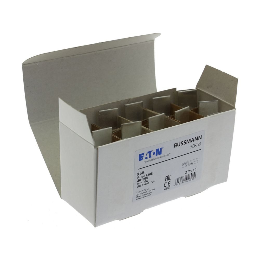 This is 6A Tag Fuse 440V ac manufactured by Eaton. The manufacturer part number is XS6. The product has a current rating of 6a. Moreover, the product has a nominal 440v ac voltage rating.