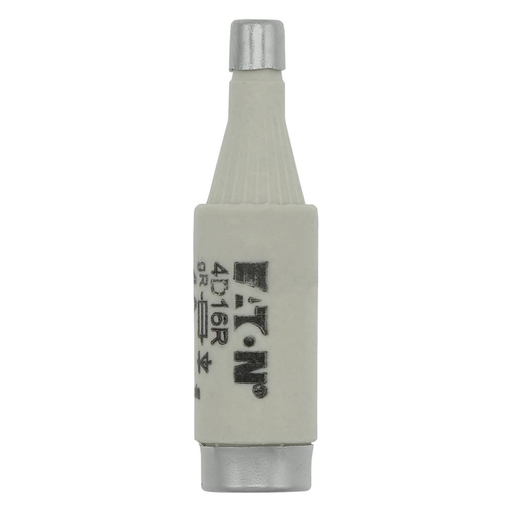 This is 4A Tag Fuse 14 x 50mm 500V manufactured by Eaton. The manufacturer part number is 4D16R. Moreover, the product has a nominal 500v voltage rating. A fuse with a 14 x 50mm size. The product has a current rating of 4a. The fuse complies with iec standards.