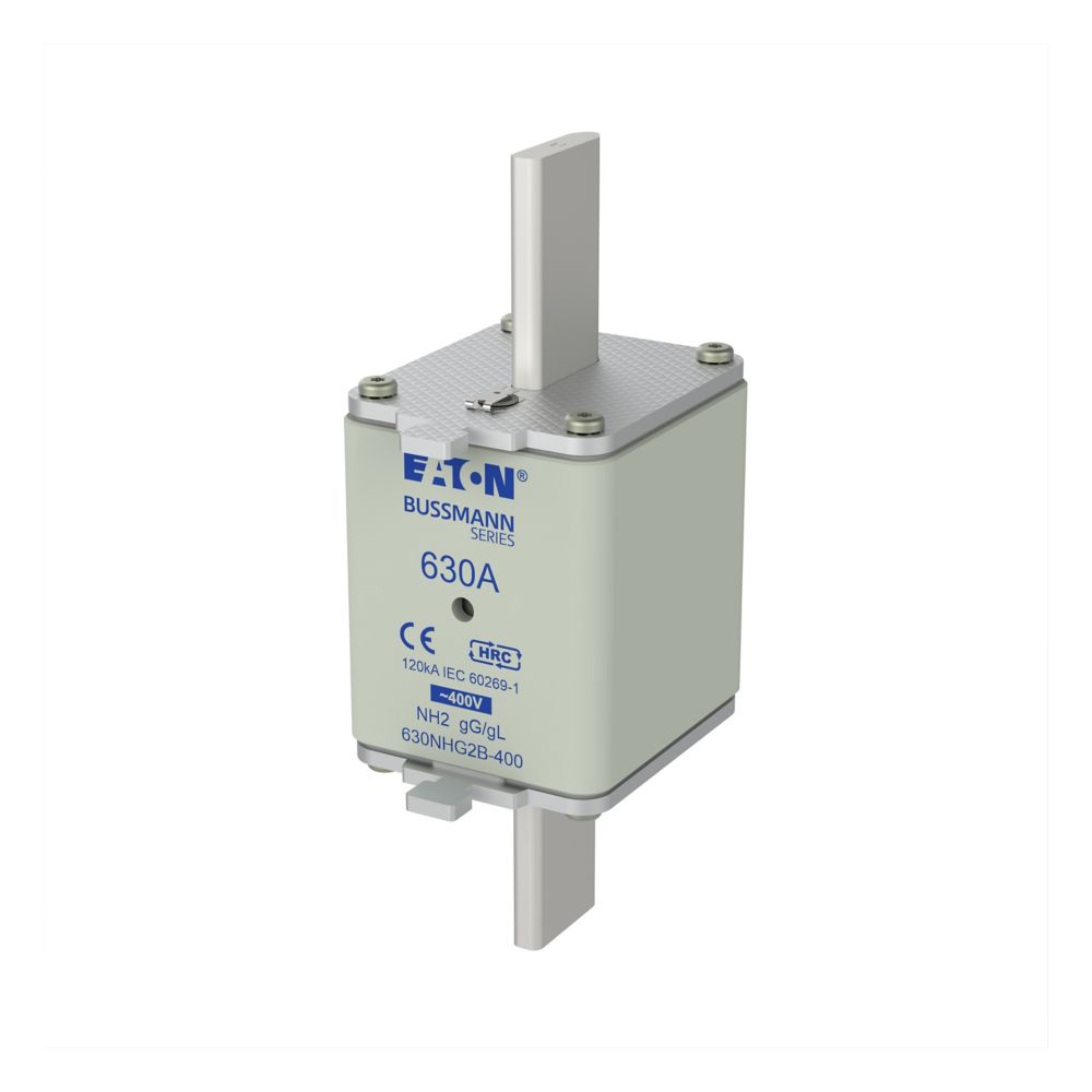 This is 630A NH Fuse 71 x 54 x 150mm 400V ac manufactured by Eaton. The manufacturer part number is 630NHG2B-400 NH FUSE 630A 400V GG/GL SIZE 2. Moreover, the product has a nominal 400v ac voltage rating. A fuse with a 71 x 54 x 150mm size. The product has a current rating of 630a. The fuse complies with gl/gg standards.