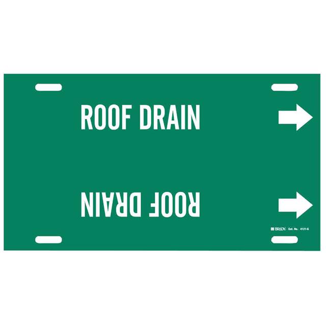 This is manufactured by Brady Corporation. The manufacturer part number is 4121-G. Label with a size of 24.00" l x 10.00" w (609.6mm x 254.0mm). The product is not applicable. It is shipped in bulk package . It has a classic white legend, green background colour. The product brady®, is a highly preferred choice for users. The product is made from highly stable and reliable plastic. In addition, it is reach unaffected. Its typical moisture sensitivity level is not applicable. A bespoke label is a roof drain label. Moreover, it corresponds to 4121, a base product number of the product. It has a long 4 weeks standard lead time.