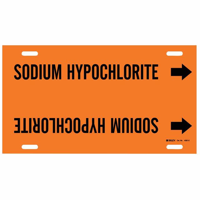 This is manufactured by Brady Corporation. The manufacturer part number is 4362-G. Label with a size of 24.00" l x 10.00" w (609.6mm x 254.0mm). The product is not applicable. It is shipped in bulk package . It has a classic black legend, orange background colour. The product brady®, is a highly preferred choice for users. The product is made from highly stable and reliable plastic. In addition, it is reach unaffected. Its typical moisture sensitivity level is not applicable. A bespoke label is a sodium hypochlorite label. Moreover, it corresponds to 4362, a base product number of the product. It has a long 4 weeks standard lead time.