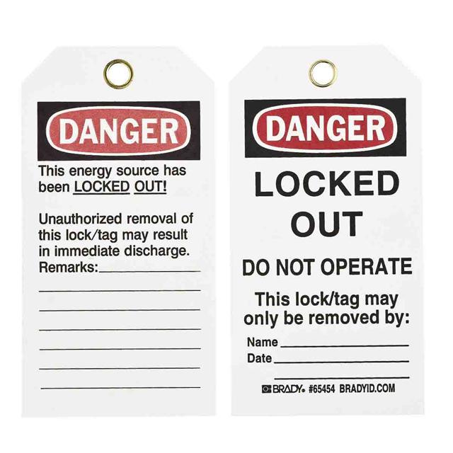 This is manufactured by Brady Corporation. The manufacturer part number is 65454. Label with a size of 5.75" l x 3.00" w (146.0mm x 76.2mm). The product is not applicable. It is shipped in bulk package . It has a classic black and red legend, white background colour. The product brady®, is a highly preferred choice for users. The product is made from highly stable and reliable paper. In addition, it is reach unaffected. Its typical moisture sensitivity level is not applicable. A bespoke label is a danger. locked out do not operate this lock/tag may only be removed by. name. date. label. The product is suitable for use with danger. It has a long 4 weeks standard lead time.