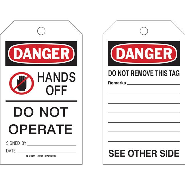 This is manufactured by Brady Corporation. The manufacturer part number is 86464. Label with a size of 7.00" l x 4.00" w (177.8mm x 101.6mm). It is shipped in bulk package . It has a classic black and red legend, white background colour. The product brady®, is a highly preferred choice for users. The product is made from highly stable and reliable polyester. In addition, it is reach unaffected. Its typical moisture sensitivity level is not applicable. A bespoke label is a danger. hands off do not operate signed by. date. label. The product is suitable for use with danger. It has a long 4 weeks standard lead time.