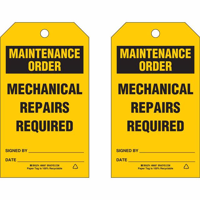 This is manufactured by Brady Corporation. The manufacturer part number is 86474. Label with a size of 7.00" l x 4.00" w (177.8mm x 101.6mm). The product is rohs3 compliant. It is shipped in bulk package . It has a classic black legend, yellow background colour. The product brady®, is a highly preferred choice for users. The product is made from highly stable and reliable polyester. In addition, it is reach unaffected. Its typical moisture sensitivity level is not applicable. A bespoke label is a maintenance order. mechanical repairs required signed by. date. label. It has a long 4 weeks standard lead time.