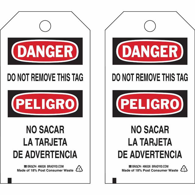 This is manufactured by Brady Corporation. The manufacturer part number is 86526. Label with a size of 5.75" l x 3.00" w (146.0mm x 76.2mm). The product is not applicable. It is shipped in bulk package . It has a classic black and red legend, white background colour. The product brady®, is a highly preferred choice for users. The product is made from highly stable and reliable polyester. In addition, it is reach unaffected. Its typical moisture sensitivity level is not applicable. A bespoke label is a danger/peligro. do not remove this tag no sacar la tarjeta de advertencia label. The product is suitable for use with danger. It has a long 4 weeks standard lead time.