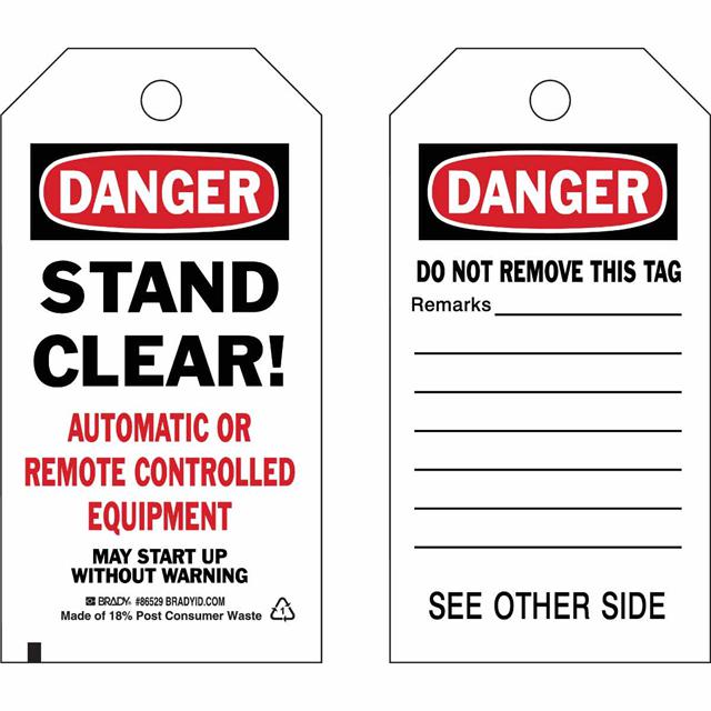 This is manufactured by Brady Corporation. The manufacturer part number is 86529. Label with a size of 5.75" l x 3.00" w (146.0mm x 76.2mm). The product is not applicable. It is shipped in bulk package . It has a classic black and red legend, white background colour. The product brady®, is a highly preferred choice for users. The product is made from highly stable and reliable polyester. In addition, it is reach unaffected. Its typical moisture sensitivity level is not applicable. A bespoke label is a danger. stand clear! automatic or remote controlled equipment may start up without warning label. The product is suitable for use with danger. It has a long 4 weeks standard lead time.