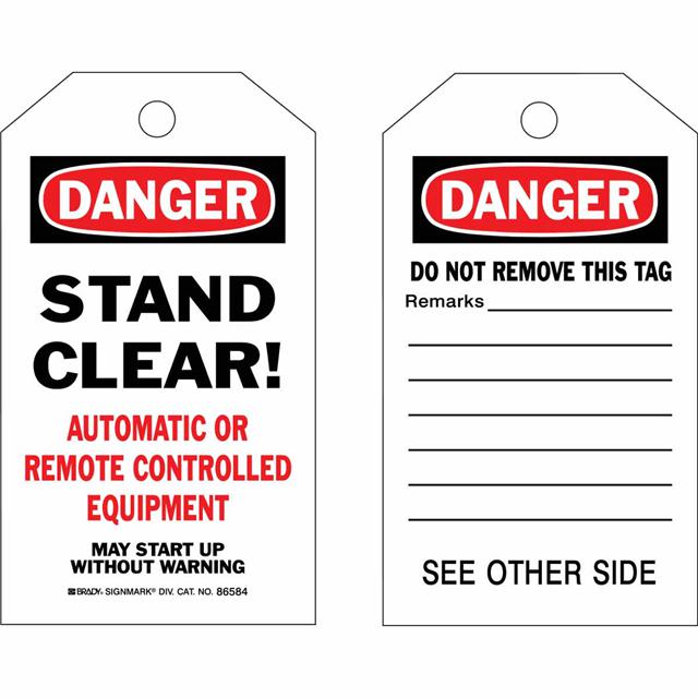 This is manufactured by Brady Corporation. The manufacturer part number is 86584. Label with a size of 7.00" l x 4.00" w (177.8mm x 101.6mm). The product is rohs3 compliant. It has a classic black and red legend, white background colour. The product brady®, is a highly preferred choice for users. The product is made from highly stable and reliable polyester. In addition, it is reach unaffected. Its typical moisture sensitivity level is not applicable. In addition, bulk is the available packaging type of the product. A bespoke label is a danger. stand clear! automatic or remote controlled equipment may start up without warning label. The product is suitable for use with danger. It has a long 4 weeks standard lead time. The brady corporation's product offers user-desired applications.