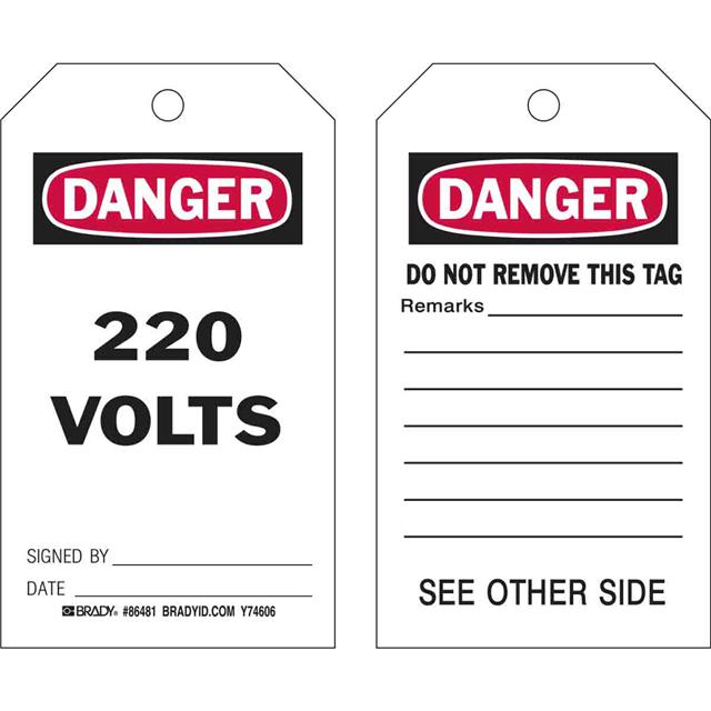 This is manufactured by Brady Corporation. The manufacturer part number is 86594. Label with a size of 7.00" l x 4.00" w (177.8mm x 101.6mm). The product is rohs3 compliant. It is shipped in bulk package . It has a classic black and red legend, white background colour. The product brady®, is a highly preferred choice for users. The product is made from highly stable and reliable polyester. In addition, it is reach unaffected. Its typical moisture sensitivity level is not applicable. A bespoke label is a danger. 220 volts label. The product is suitable for use with danger. It has a long 4 weeks standard lead time.