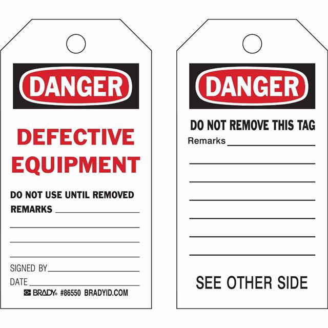 This is manufactured by Brady Corporation. The manufacturer part number is 86605. Label with a size of 7.00" l x 4.00" w (177.8mm x 101.6mm). The product is rohs3 compliant. It is shipped in bulk package . It has a classic black and red legend, white background colour. The product brady®, is a highly preferred choice for users. The product is made from highly stable and reliable polyester. In addition, it is reach unaffected. Its typical moisture sensitivity level is not applicable. A bespoke label is a danger. defective equipment do not use until removed remarks. signed by. date. label. The product is suitable for use with danger. It has a long 4 weeks standard lead time.