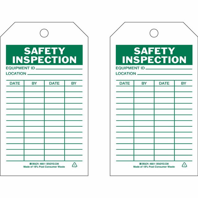 This is manufactured by Brady Corporation. The manufacturer part number is 86611. Label with a size of 7.00" l x 4.00" w (177.8mm x 101.6mm). The product is rohs3 compliant. It is shipped in bulk package . It has a classic green legend, white background colour. The product brady®, is a highly preferred choice for users. The product is made from highly stable and reliable polyester. In addition, it is reach unaffected. Its typical moisture sensitivity level is not applicable. A bespoke label is a safety inspection. equipment id. location. date. by. date. by. label. It has a long 4 weeks standard lead time.