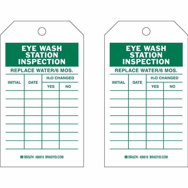 This is manufactured by Brady Corporation. The manufacturer part number is 86619. Label with a size of 7.00" l x 4.00" w (177.8mm x 101.6mm). The product is rohs3 compliant. It is shipped in bulk package . It has a classic green legend, white background colour. The product brady®, is a highly preferred choice for users. The product is made from highly stable and reliable polyester. In addition, it is reach unaffected. Its typical moisture sensitivity level is not applicable. A bespoke label is a eye wash station inspection. replace water/6 mos initial. date. h2o changed. yes/no. label. It has a long 4 weeks standard lead time.
