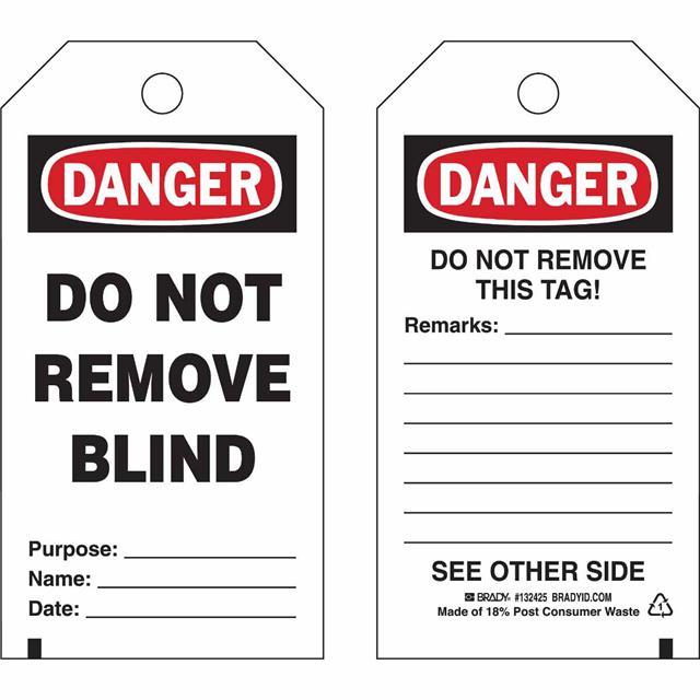 This is manufactured by Brady Corporation. The manufacturer part number is 132425. Label with a size of 5.75" l x 3.00" w (146.0mm x 76.2mm). The product is not applicable. It has a classic black and red legend, white background colour. The product brady®, is a highly preferred choice for users. The product is made from highly stable and reliable polyester. In addition, it is reach unaffected. Its typical moisture sensitivity level is not applicable. In addition, bulk is the available packaging type of the product. A bespoke label is a danger. do not remove blind purpose. name. date. label. The product is suitable for use with danger. It has a long 4 weeks standard lead time. The brady corporation's product offers user-desired applications.