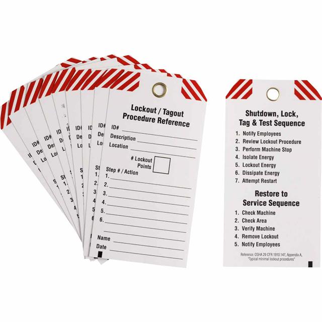 This is manufactured by Brady Corporation. The manufacturer part number is 148863. Label with a size of 5.75" l x 3.00" w (146.0mm x 76.2mm). The product is not applicable. It is shipped in bulk package . It has a classic black and red legend, white background colour. The product brady®, is a highly preferred choice for users. The product is made from highly stable and reliable polyester. In addition, it is reach unaffected. Its typical moisture sensitivity level is not applicable. A bespoke label is a lock out / tag out procedure reference. id, description, location, shut down. restore-to-service sequences label. The product is suitable for use with lockout. It has a long 4 weeks standard lead time.