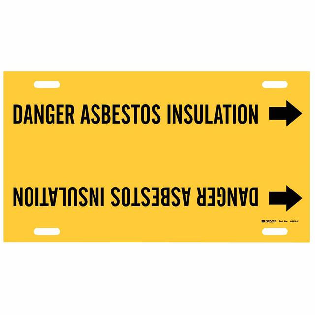 This is manufactured by Brady Corporation. The manufacturer part number is 4045-H. Label with a size of 32.00" l x 10.00" w (812.8mm x 254.0mm). The product is rohs3 compliant. It has a classic black legend, yellow background colour. The product brady®, is a highly preferred choice for users. The product is made from highly stable and reliable plastic. In addition, it is reach unaffected. Its typical moisture sensitivity level is not applicable. In addition, bulk is the available packaging type of the product. A bespoke label is a danger asbestos insulation label. The product is suitable for use with danger. It has a long 4 weeks standard lead time. Moreover, it corresponds to 4045, a base product number of the product. The brady corporation's product offers user-desired applications.