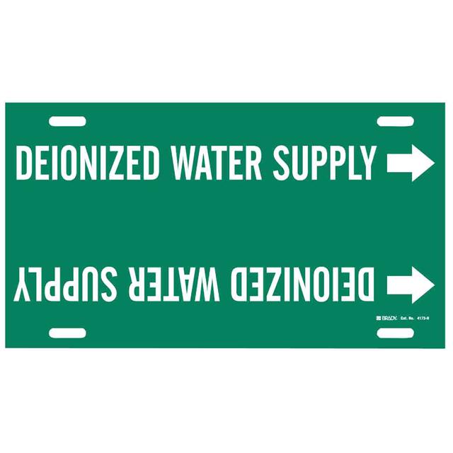 This is manufactured by Brady Corporation. The manufacturer part number is 4173-H. Label with a size of 32.00" l x 10.00" w (812.8mm x 254.0mm). The product is rohs3 compliant. It is shipped in bulk package . It has a classic white legend, green background colour. The product brady®, is a highly preferred choice for users. The product is made from highly stable and reliable plastic. In addition, it is reach unaffected. Its typical moisture sensitivity level is not applicable. A bespoke label is a deionized water supply label. Moreover, it corresponds to 4173, a base product number of the product. It has a long 4 weeks standard lead time.