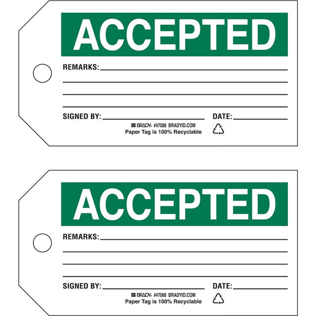 This is manufactured by Brady Corporation. The manufacturer part number is 47088. Label with a size of 5.75" l x 3.00" w (146.0mm x 76.2mm). The product is not applicable. It has a classic green legend, white background colour. The product brady®, is a highly preferred choice for users. The product is made from highly stable and reliable paper. In addition, it is reach unaffected. Its typical moisture sensitivity level is not applicable. In addition, bulk is the available packaging type of the product. A bespoke label is a accepted. scrap remarks. signed by. date. label. It has a long 4 weeks standard lead time. The brady corporation's product offers user-desired applications.