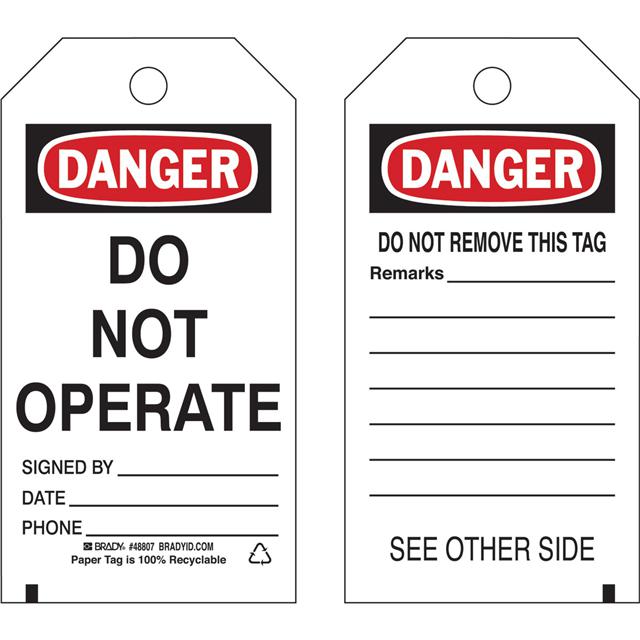 This is manufactured by Brady Corporation. The manufacturer part number is 48807. Label with a size of 5.75" l x 3.00" w (146.0mm x 76.2mm). The product is not applicable. It is shipped in bulk package . It has a classic black and red legend, white background colour. The product brady®, is a highly preferred choice for users. The product is made from highly stable and reliable paper. In addition, it is reach unaffected. Its typical moisture sensitivity level is not applicable. A bespoke label is a danger. do not operate signed by. date. label. The product is suitable for use with danger. It has a long 4 weeks standard lead time.
