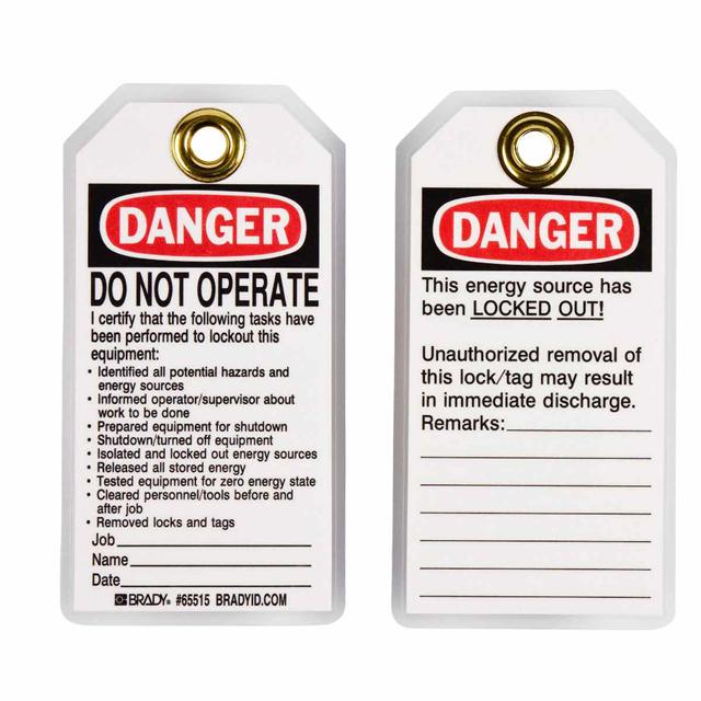 This is manufactured by Brady Corporation. The manufacturer part number is 65515. Label with a size of 5.75" l x 3.00" w (146.0mm x 76.2mm). The product is rohs3 compliant. It is shipped in bulk package . It has a classic black and red legend, white background colour. The product brady®, is a highly preferred choice for users. The product is made from highly stable and reliable polyester. In addition, it is reach unaffected. Its typical moisture sensitivity level is not applicable. A bespoke label is a danger. do not operate. i certify that the following tasks have been performed to lock out this equipment. identified all poten… label. The product is suitable for use with danger. It has a long 4 weeks standard lead time.