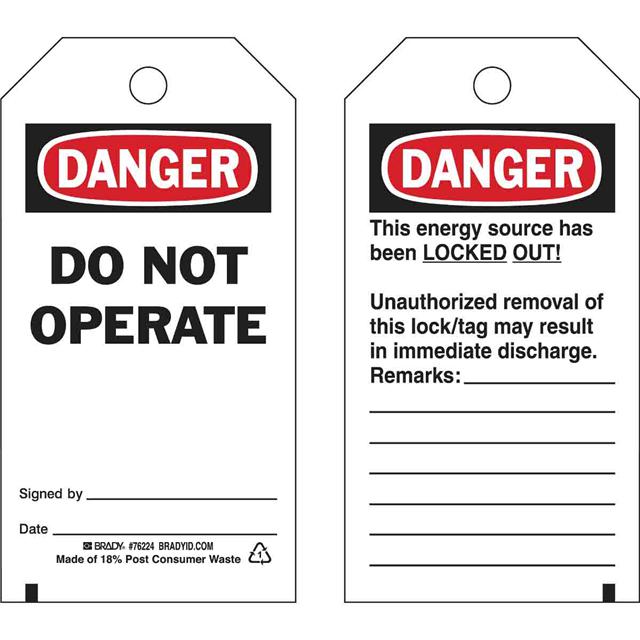 This is manufactured by Brady Corporation. The manufacturer part number is 76224. Label with a size of 5.75" l x 3.00" w (146.0mm x 76.2mm). The product is rohs3 compliant. It has a classic black and red legend, white background colour. The product brady®, is a highly preferred choice for users. The product is made from highly stable and reliable polyester. In addition, it is reach unaffected. Its typical moisture sensitivity level is not applicable. In addition, bulk is the available packaging type of the product. A bespoke label is a danger. do not operate signed by. date. label. The product is suitable for use with danger. It has a long 4 weeks standard lead time. The brady corporation's product offers user-desired applications.