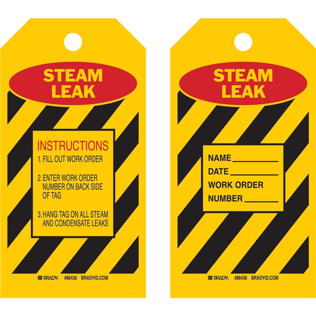 This is manufactured by Brady Corporation. The manufacturer part number is 86436. Label with a size of 5.75" l x 3.00" w (146.0mm x 76.2mm). The product is rohs3 compliant. It has a classic black and red legend, yellow background colour. The product brady®, is a highly preferred choice for users. The product is made from highly stable and reliable polyester. In addition, it is reach unaffected. Its typical moisture sensitivity level is not applicable. In addition, bulk is the available packaging type of the product. A bespoke label is a steam leak. instructions label. It has a long 4 weeks standard lead time. The brady corporation's product offers user-desired applications.