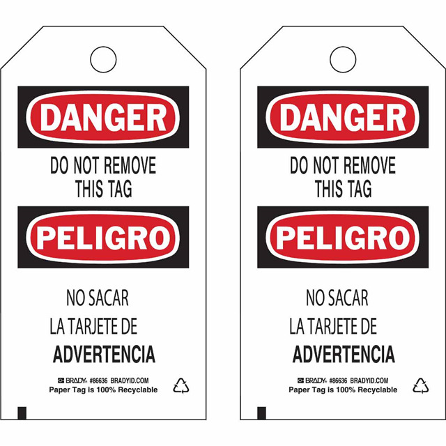This is manufactured by Brady Corporation. The manufacturer part number is 86636. Label with a size of 5.75" l x 3.00" w (146.0mm x 76.2mm). The product is not applicable. It has a classic black and red legend, white background colour. The product brady®, is a highly preferred choice for users. The product is made from highly stable and reliable paper. In addition, it is reach unaffected. Its typical moisture sensitivity level is not applicable. In addition, bulk is the available packaging type of the product. A bespoke label is a danger/peligro. do not remove this tag no sacar la tarjeta de advertencia label. The product is suitable for use with danger. It has a long 4 weeks standard lead time. The brady corporation's product offers user-desired applications.