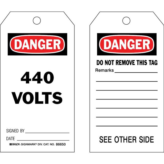 This is manufactured by Brady Corporation. The manufacturer part number is 86650. Label with a size of 5.75" l x 3.00" w (146.0mm x 76.2mm). The product is not applicable. It has a classic black and red legend, white background colour. The product brady®, is a highly preferred choice for users. The product is made from highly stable and reliable paper. In addition, it is reach unaffected. Its typical moisture sensitivity level is not applicable. In addition, bulk is the available packaging type of the product. A bespoke label is a danger. 440 volts signed by. date. label. The product is suitable for use with danger. It has a long 4 weeks standard lead time. The brady corporation's product offers user-desired applications.