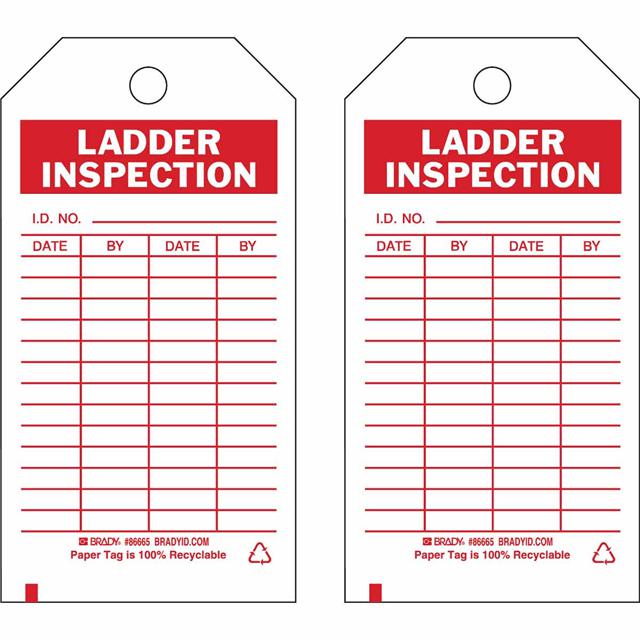 This is manufactured by Brady Corporation. The manufacturer part number is 86665. Label with a size of 5.75" l x 3.00" w (146.0mm x 76.2mm). The product is not applicable. It has a classic red legend, white background colour. The product brady®, is a highly preferred choice for users. The product is made from highly stable and reliable paper. In addition, it is reach unaffected. Its typical moisture sensitivity level is not applicable. In addition, bulk is the available packaging type of the product. A bespoke label is a ladder inspection. i.d. no. date. by. date. by. label. It has a long 4 weeks standard lead time. The brady corporation's product offers user-desired applications.