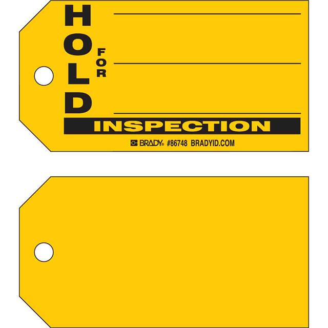 This is manufactured by Brady Corporation. The manufacturer part number is 86748. Label with a size of 5.75" l x 3.00" w (146.0mm x 76.2mm). The product is not applicable. It has a classic black legend, yellow background colour. The product brady®, is a highly preferred choice for users. The product is made from highly stable and reliable paper. In addition, it is reach unaffected. Its typical moisture sensitivity level is not applicable. In addition, bulk is the available packaging type of the product. A bespoke label is a hold for inspection label. It has a long 4 weeks standard lead time. The brady corporation's product offers user-desired applications.