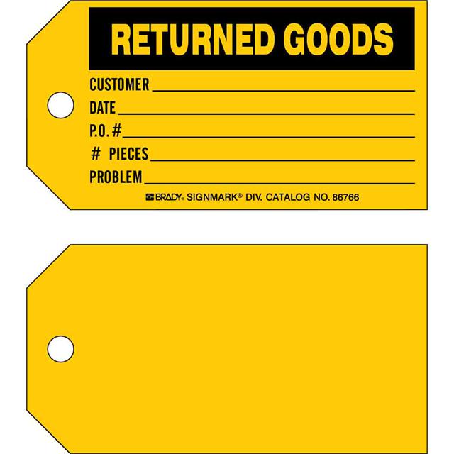 This is manufactured by Brady Corporation. The manufacturer part number is 86766. Label with a size of 5.75" l x 3.00" w (146.0mm x 76.2mm). The product is not applicable. It has a classic black legend, yellow background colour. The product brady®, is a highly preferred choice for users. The product is made from highly stable and reliable paper. In addition, it is reach unaffected. Its typical moisture sensitivity level is not applicable. In addition, bulk is the available packaging type of the product. A bespoke label is a returned goods. customer. date. p. o. pieces. problem label. It has a long 4 weeks standard lead time. The brady corporation's product offers user-desired applications.