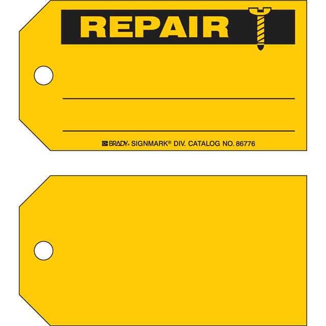 This is manufactured by Brady Corporation. The manufacturer part number is 86776. Label with a size of 5.75" l x 3.00" w (146.0mm x 76.2mm). The product is rohs3 compliant. It is shipped in bulk package . It has a classic black legend, yellow background colour. The product brady®, is a highly preferred choice for users. The product is made from highly stable and reliable paper. In addition, it is reach unaffected. Its typical moisture sensitivity level is not applicable. A bespoke label is a repair label. It has a long 4 weeks standard lead time.