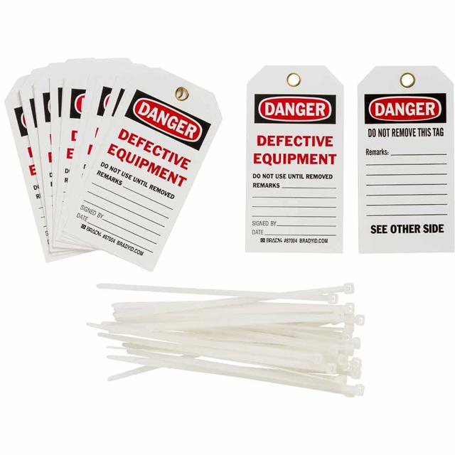 This is manufactured by Brady Corporation. The manufacturer part number is 87004. Label with a size of 5.75" l x 3.00" w (146.0mm x 76.2mm). The product is rohs3 compliant. It is shipped in bulk package . It has a classic black and red legend, white background colour. The product brady®, is a highly preferred choice for users. The product is made from highly stable and reliable polyester. In addition, it is reach unaffected. Its typical moisture sensitivity level is not applicable. A bespoke label is a danger. defective equipment do not use until removed remarks. signed by. date. label. The product is suitable for use with danger. It has a long 4 weeks standard lead time.