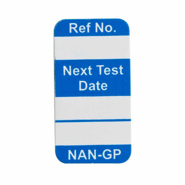 This is manufactured by Brady Corporation. The manufacturer part number is NAN-GP B. Label with a size of 1.33" l x 0.70" w (33.7mm x 17.8mm). The product is rohs3 compliant. It is shipped in bulk package . It has a classic blue legend, white background colour. The product brady®, is a highly preferred choice for users. The product is made from highly stable and reliable plastic. In addition, it is reach unaffected. Its typical moisture sensitivity level is not applicable. A bespoke label is a ref no. next test date. nan-gp label. Moreover, it corresponds to nan-gp, a base product number of the product. It has a long 4 weeks standard lead time.