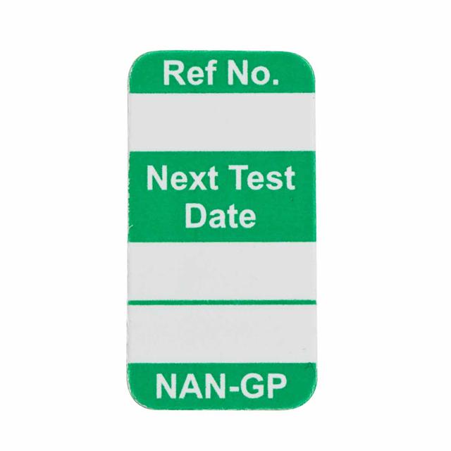 This is manufactured by Brady Corporation. The manufacturer part number is NAN-GP G. Label with a size of 1.33" l x 0.70" w (33.7mm x 17.8mm). The product is rohs3 compliant. It is shipped in bulk package . It has a classic green legend, white background colour. The product brady®, is a highly preferred choice for users. The product is made from highly stable and reliable plastic. In addition, it is reach unaffected. Its typical moisture sensitivity level is not applicable. A bespoke label is a ref no. next test date. nan-gp label. Moreover, it corresponds to nan-gp, a base product number of the product. It has a long 4 weeks standard lead time.
