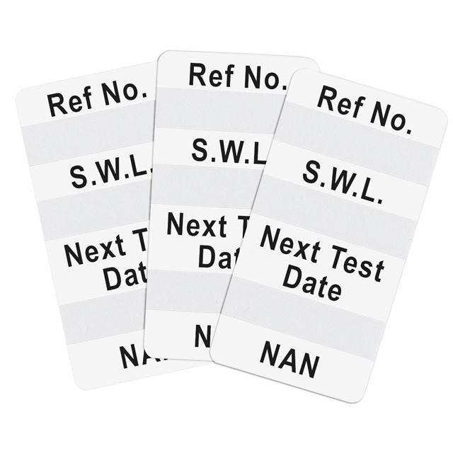 This is manufactured by Brady Corporation. The manufacturer part number is NAN-NAN WHITE. Label with a size of 1.33" l x 0.70" w (33.7mm x 17.8mm). The product is rohs3 compliant. It is shipped in bulk package . It has a classic black legend, white background colour. The product brady®, is a highly preferred choice for users. The product is made from highly stable and reliable plastic. In addition, it is reach unaffected. Its typical moisture sensitivity level is not applicable. A bespoke label is a ref no. s.w.l. next test date. nan label. Moreover, it corresponds to nan-nan, a base product number of the product. It has a long 4 weeks standard lead time.