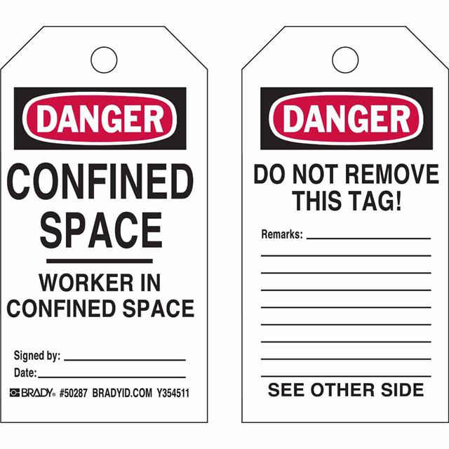 This is manufactured by Brady Corporation. The manufacturer part number is 50287. Label with a size of 5.75" l x 3.00" w (146.0mm x 76.2mm). It has a classic black and red legend, white background colour. The product brady®, is a highly preferred choice for users. The product is made from highly stable and reliable polyester. In addition, it is reach unaffected. Its typical moisture sensitivity level is not applicable. In addition, bulk is the available packaging type of the product. A bespoke label is a danger. confined space worker in confined space signedby. date. label. The product is suitable for use with danger. It has a long 4 weeks standard lead time. The brady corporation's product offers user-desired applications.