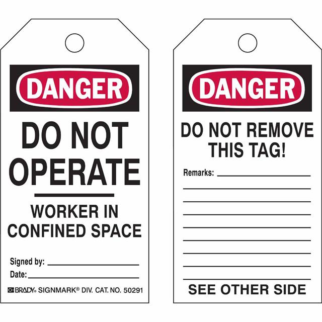 This is manufactured by Brady Corporation. The manufacturer part number is 50291. Label with a size of 5.75" l x 3.00" w (146.0mm x 76.2mm). The product is rohs3 compliant. It has a classic black and red legend, white background colour. The product brady®, is a highly preferred choice for users. The product is made from highly stable and reliable polyester. In addition, it is reach unaffected. Its typical moisture sensitivity level is not applicable. In addition, bulk is the available packaging type of the product. A bespoke label is a danger. do not operate worker in confined space signed by. date. label. The product is suitable for use with danger. It has a long 4 weeks standard lead time. The brady corporation's product offers user-desired applications.