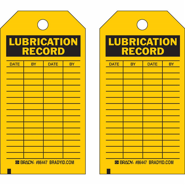 This is manufactured by Brady Corporation. The manufacturer part number is 86726. Label with a size of 7.00" l x 4.00" w (177.8mm x 101.6mm). The product is not applicable. It has a classic black legend, yellow background colour. The product brady®, is a highly preferred choice for users. The product is made from highly stable and reliable paper. In addition, it is reach unaffected. Its typical moisture sensitivity level is not applicable. In addition, bulk is the available packaging type of the product. A bespoke label is a lubrication record. date. by. date. by. label. It has a long 4 weeks standard lead time. The brady corporation's product offers user-desired applications.