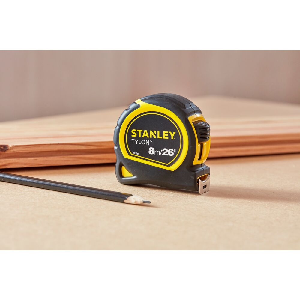 This is TYLON 8m Tape Measure Metric & Imperial manufactured by Stanley. The manufacturer part number is 0-30-656. It is available in imperial, metric package. The product tylon, is a highly preferred choice for users. Its accurate length is 8m. It contains an open case no . Its blade is 25 mm in width .