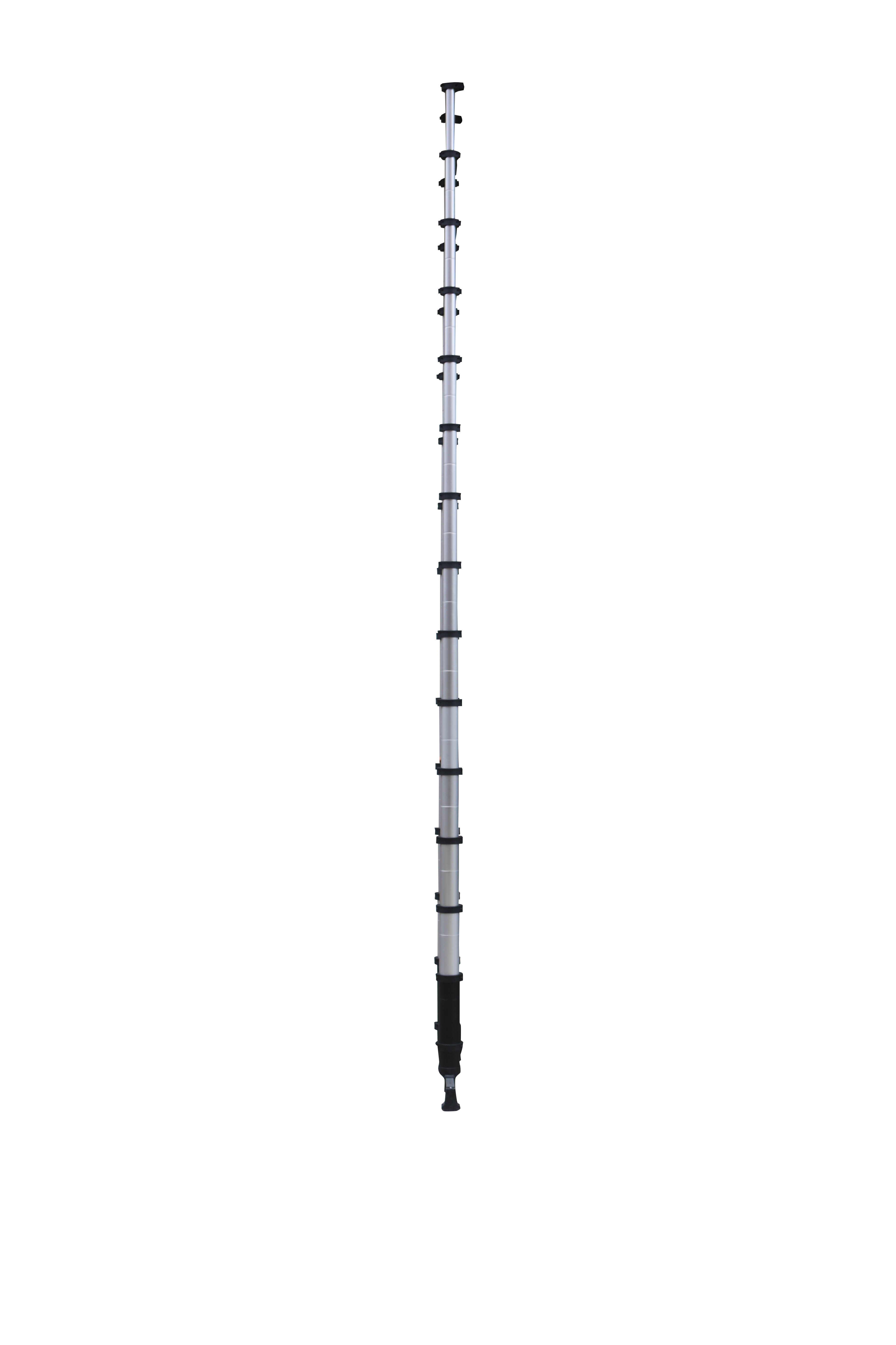 This is Telescopic Ladder Aluminium 15 steps 4.4m open length manufactured by TUBESCA. The manufacturer part number is 00094844. The typical product's weight is 21kg. Moreover, it has approximately 4.4m open length . It has about 940mm closed length . It has a tread material of aluminium . The product has a/an aluminium stiles material . It has 15 treads . Its maximum load is approximately 150kg .