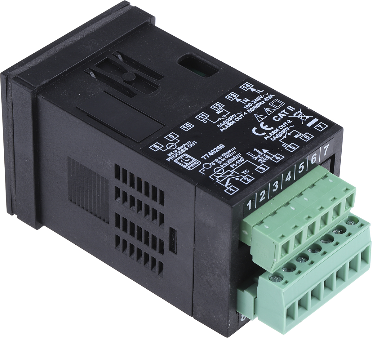 This is 1/16 DIN PID Temperature Controller 48 x 48mm 3 Output Current Relay 100 → 240 V ac Supply Voltage manufactured by RS Pro. The manufacturer part number is 774-0269. Additionally, it has a/an pid controller type control . It features a remarkable led display. It has an attractive green, red colour display . It includes on/off as additional functionality . The product is available in 1/16 din configuration. It is IP rated with ip20, ip65. Whereas, its panel depth is about 87.5mm . Furthermore, it has acurrent, relay output. It includes available communication module no . Features 100 → 240 v ac supply voltage. It carries rtd, universal input tc, voltage/current (dc) input type. The product's typical temperature range incudes 0 → +50 °c. Additionally, the product is supplied with 3 outputs. It has a maximum operating temperature of +50°c. Whereas, the minimum operating temperature of the product is 0°c. The product is available in 48 x 48mm size.