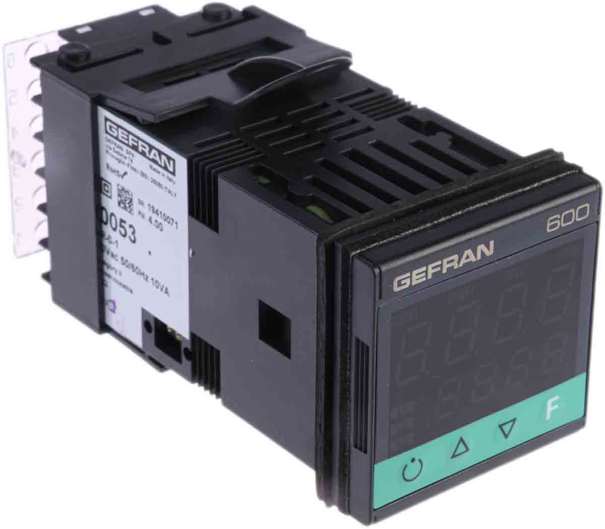 This is 600 PID Temperature Controller 48 x 48 (1/16 DIN)mm 3 Output Relay 100 V ac 240 V ac Supply Voltage ON/OFF manufactured by Gefran. The manufacturer part number is 600-R-R-R-0-1. Additionally, it has a/an on/off type control . It features a remarkable led, multi line display. It has an attractive green colour display . Whereas, the minimum operating temperature of the product is 0°c. It is IP rated with ip65. The product 600, is a highly preferred choice for users. Whereas, its panel depth is about 99mm . Furthermore, it has arelay output. It features gefran 600 range. Features 100 v ac, 240 v ac supply voltage. It includes on/off as additional functionality . The product's typical temperature range incudes 0 → +1750 °c. Additionally, the product is supplied with 3 outputs. It has a maximum operating temperature of +50°c. The product is available in 48 x 48 (1/16 din)mm size.