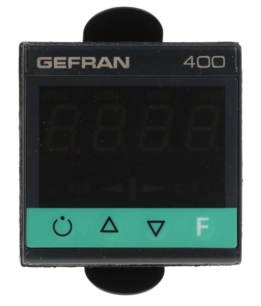 This is 400 PID Temperature Controller 48 x 48 (1/16 DIN)mm 2 Output Logic Relay manufactured by Gefran. The manufacturer part number is 400-DR-0-000. Additionally, the product is supplied with 2 outputs. It features a remarkable single display. It has an attractive green colour display . Whereas, the minimum operating temperature of the product is 0°c. It is IP rated with ip65. The product 400, is a highly preferred choice for users. Whereas, its panel depth is about 99mm . Furthermore, it has alogic, relay output. It features gefran 400 range. Features 11 → 27 v ac/dc supply voltage. It includes on/off as additional functionality . The product's typical temperature range incudes 0 → +1000 (type j thermocouple) °c, 0 → +1300 (type k thermocouple) °c, 0 → +1300 (type n thermocouple) °c, 0 → +1750 (type r thermocouple) °c, 0 → +1750 (type s thermocouple) °c, -100 → +750 (type e thermocouple) °c, -200 → +400 (type t thermocouple) °c, -200 → +600 (rtd 3 wires - pt100) °c, 44 → +1800 (type b thermocouple) °c, -55 → +120 (ptc) °c. It has a maximum operating temperature of +50°c. The product is available in 48 x 48 (1/16 din)mm size.