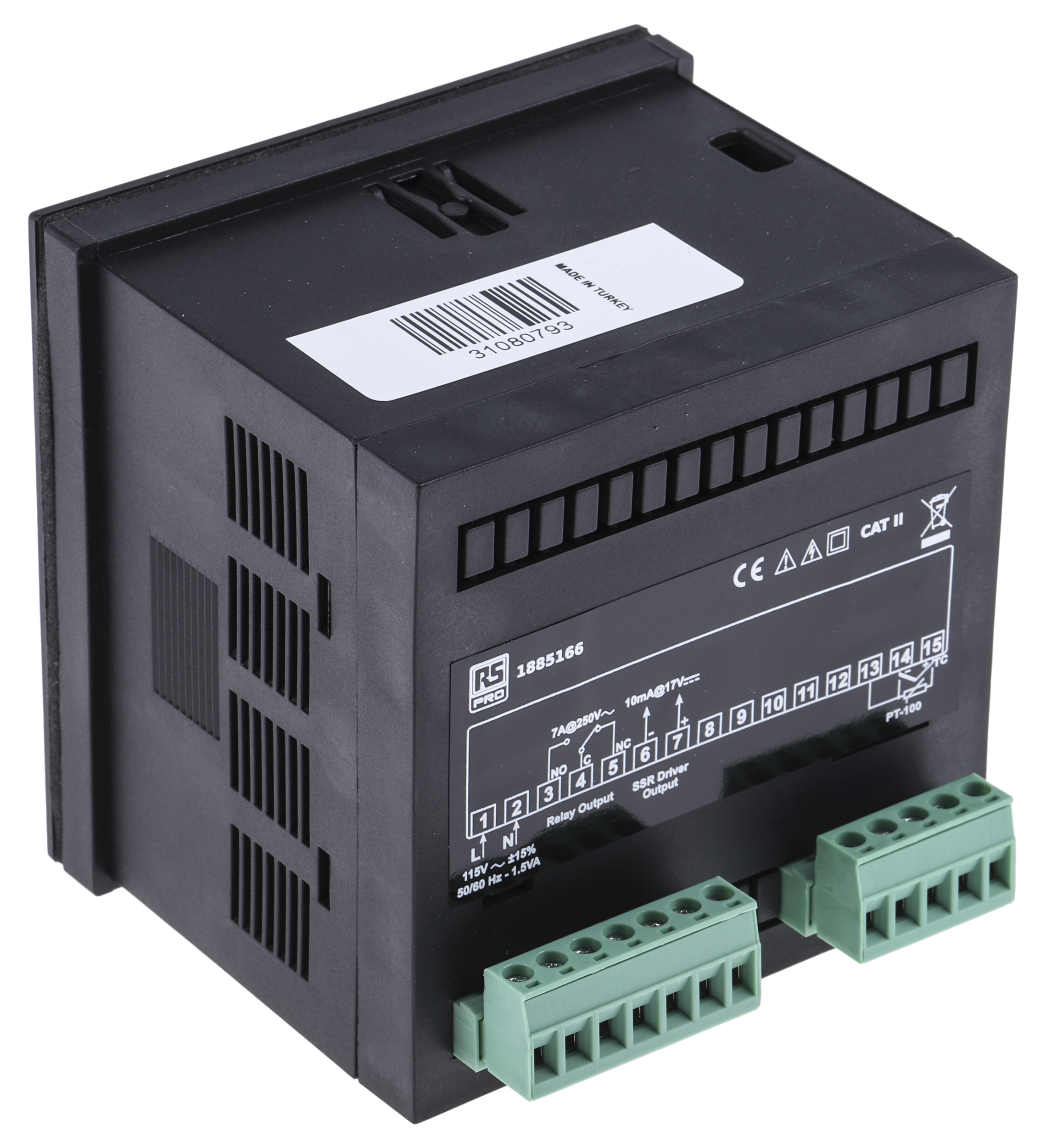 This is PID Temperature Controller 96 x 96mm 1 Input 2 Output Relay SSR 115 V ac Supply Voltage manufactured by RS PRO. The manufacturer part number is 188-5166. Additionally, the product is supplied with 2 outputs. It features a remarkable 10 digit display. The product consists of 1 inputs. It is IP rated with ip20, ip65. Furthermore, it has arelay, ssr output. Features 115 v ac supply voltage. It carries cu-50, j type thermocouple, k type thermocouple, l type thermocouple, pt100, r type thermocouple, s type thermocouple, t type thermocouple input type. The product's typical temperature range incudes 0 → 50 °c, -200 → +1700 °c. It has a maximum operating temperature of +50°c. Whereas, the minimum operating temperature of the product is 0°c. The product is available in 96 x 96mm size.