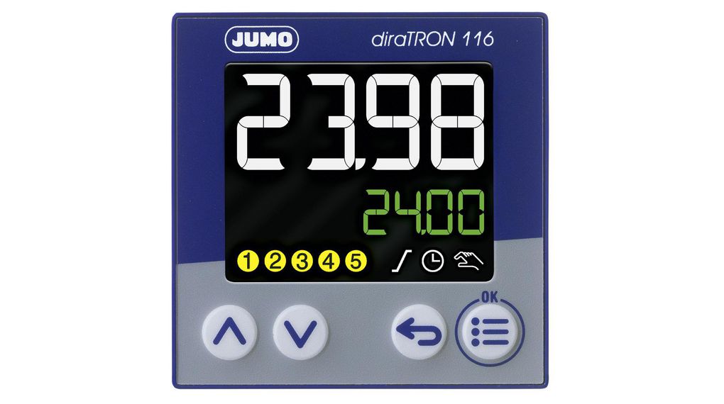This is diraTRON Panel Mount PID Temperature Controller 48 x 48mm 3 Input 3 Output 2 Relay 1 Logic 110 → 240 V manufactured by Jumo. The manufacturer part number is 702111/8-0000-23/000. The product is available in panel mount configuration. The product diratron, is a highly preferred choice for users. Furthermore, it has alogic, relay output. Features 240 v supply voltage. The product is available in 45 x 45 x 77.9mm size.